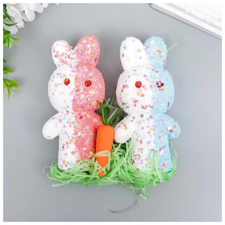 10 цен на Декор "Зайчата в посыпке с морковкой и травкой" набор розовый, голубой 12 см