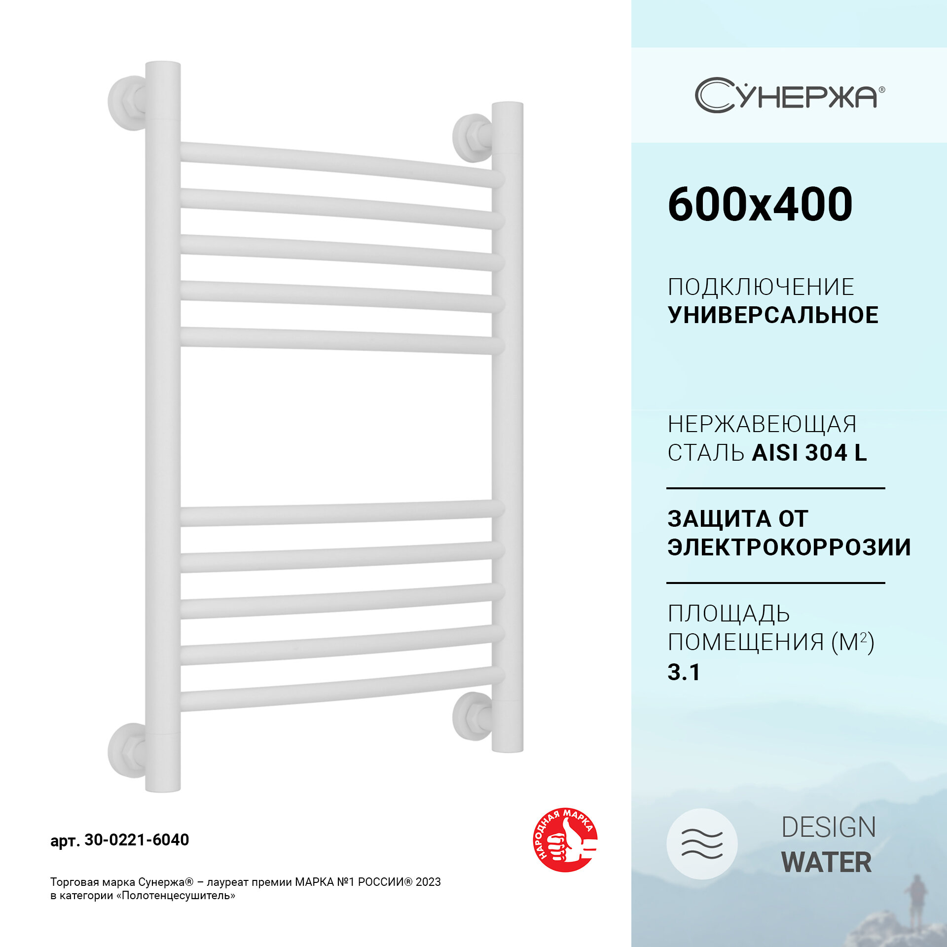 Водяной полотенцесушитель Сунержа Богема+ выгнутая 600x400 матовый белый информация: