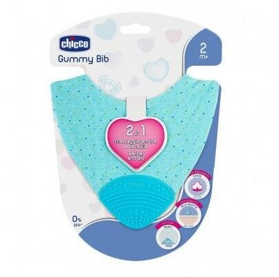 Нагрудник с прорезывателем Chicco Gummy 2в1, 2 мес+, голубой информация: