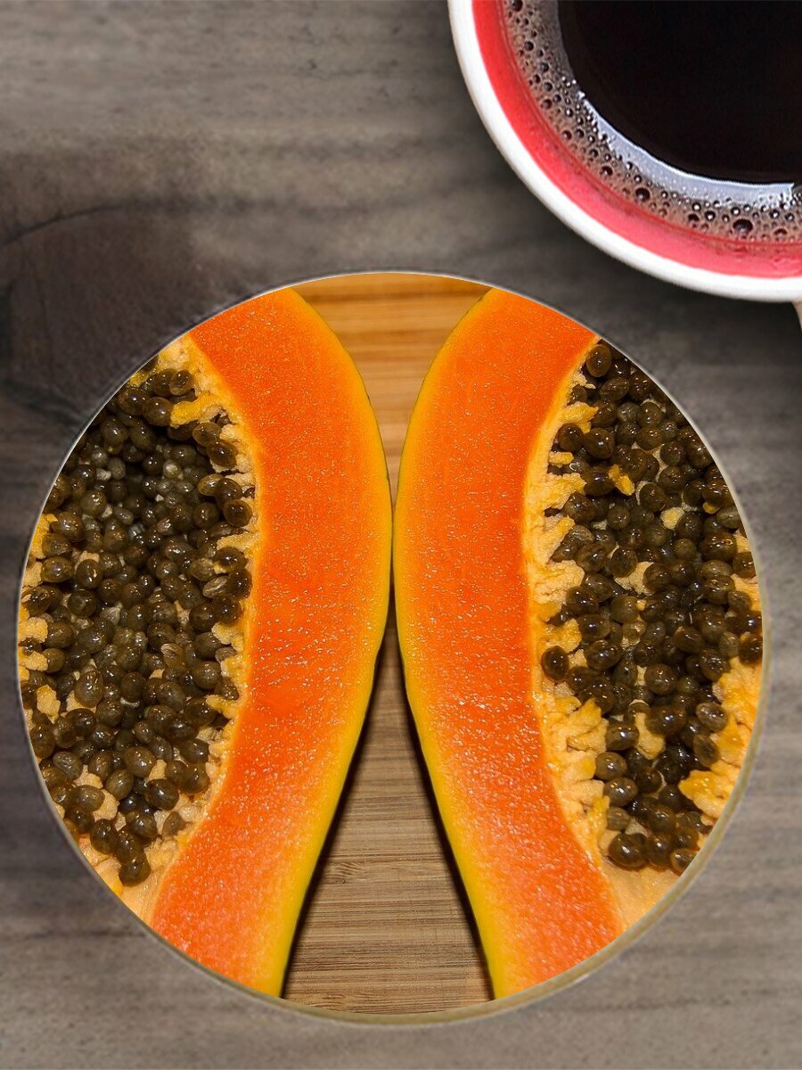 Отзывы на Подставка под горячее "Папайя, красная папайя, фрукты" 10 см. из блого мрамора