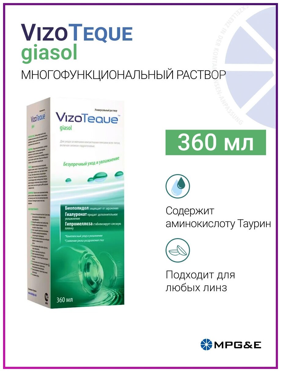 Раствор для контактных линз VizoTeque Giasol, 360 мл информация: