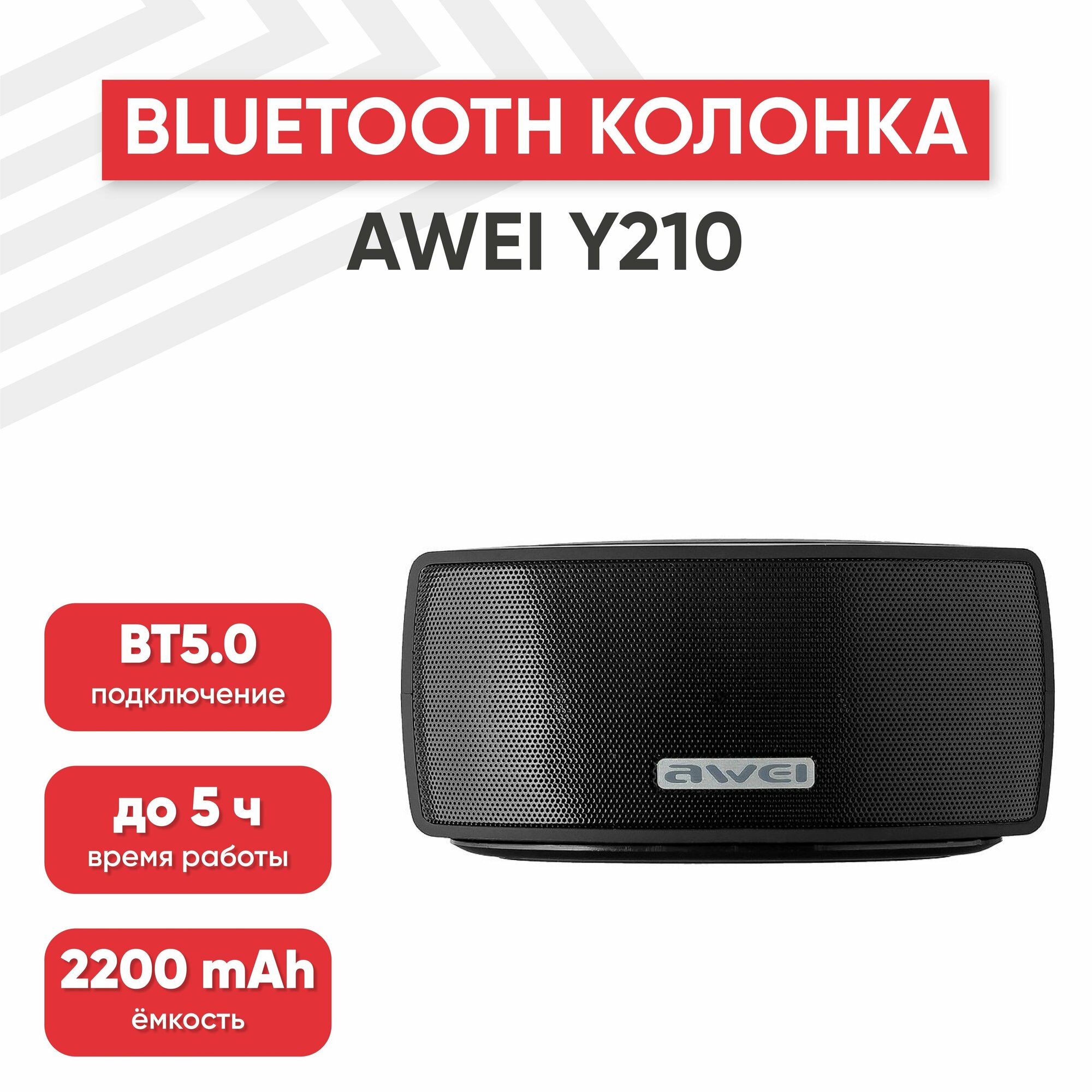 10 цен на Портативная колонка AWEI Y-210, 2200мАч, 2 динамика 3W, BT 4.2, NFC, Micro SD, AUX, сенсорное управление, черная