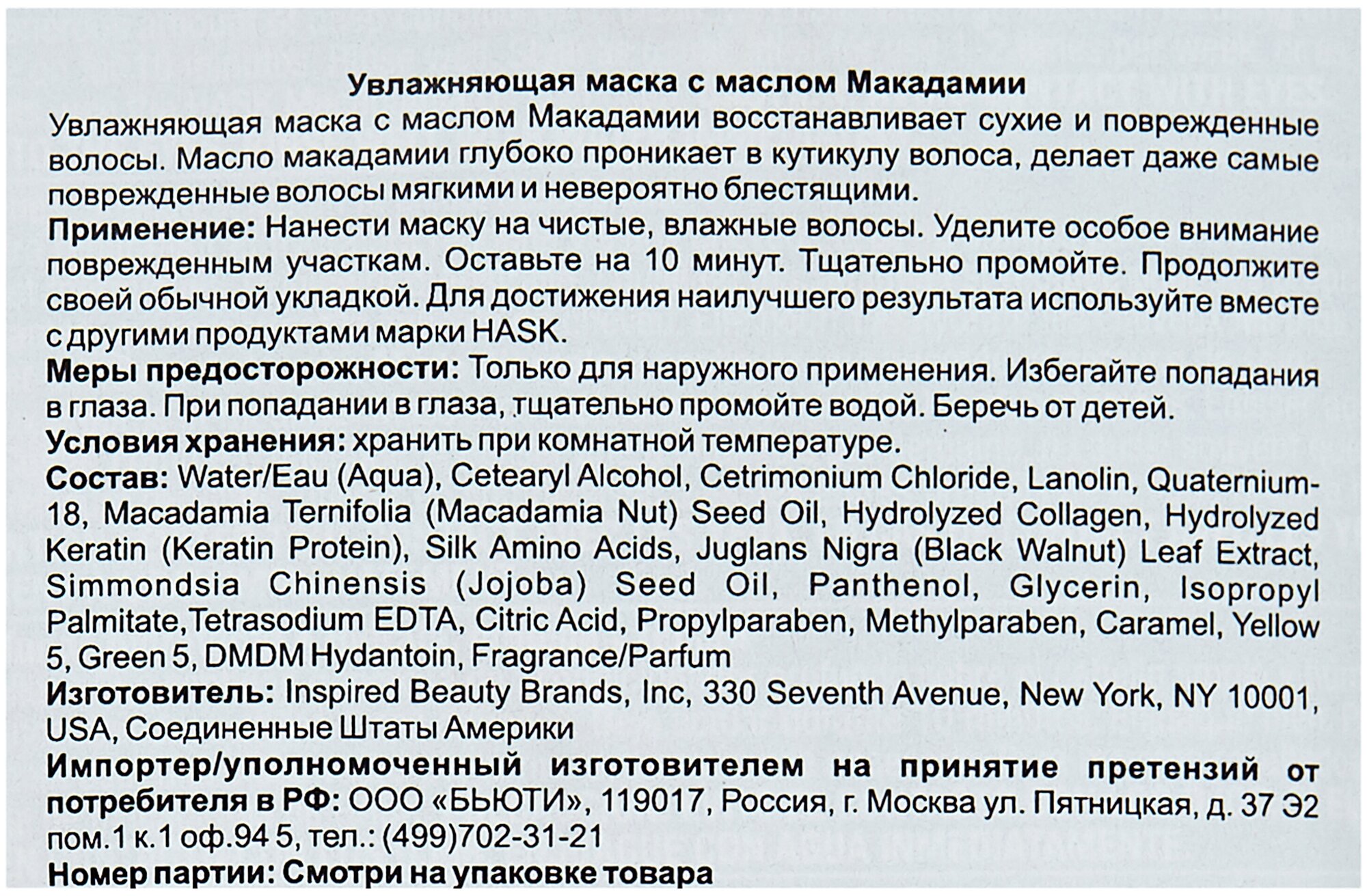 Маска для волос Hask Macadamia Oil Moisturizing Deep Conditioner Packet /50 мл/гр. информация: