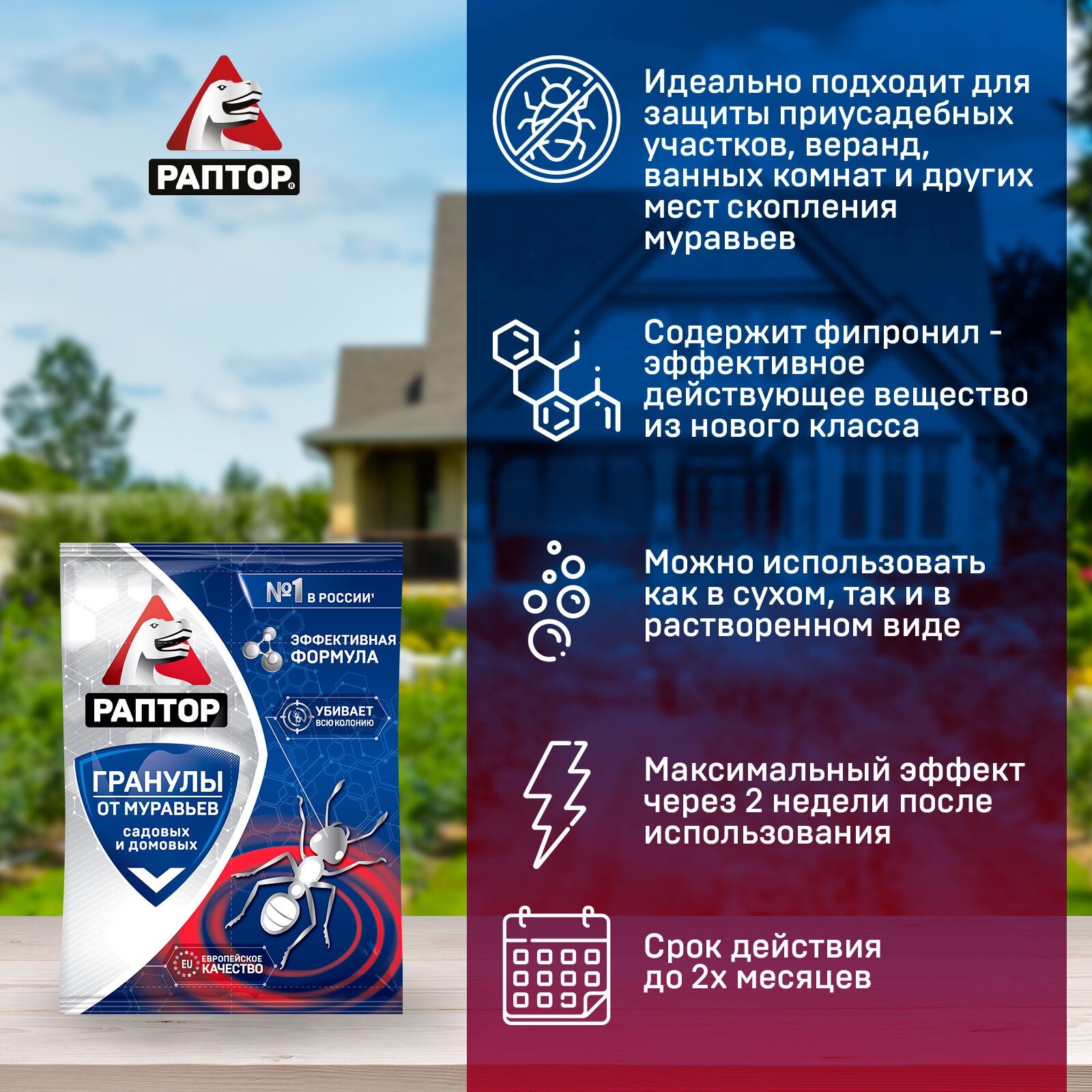 Гранулы от муравьев в саше, Раптор, Средство от домашних и садовых муравьев, 100 г х 2 шт. информация: