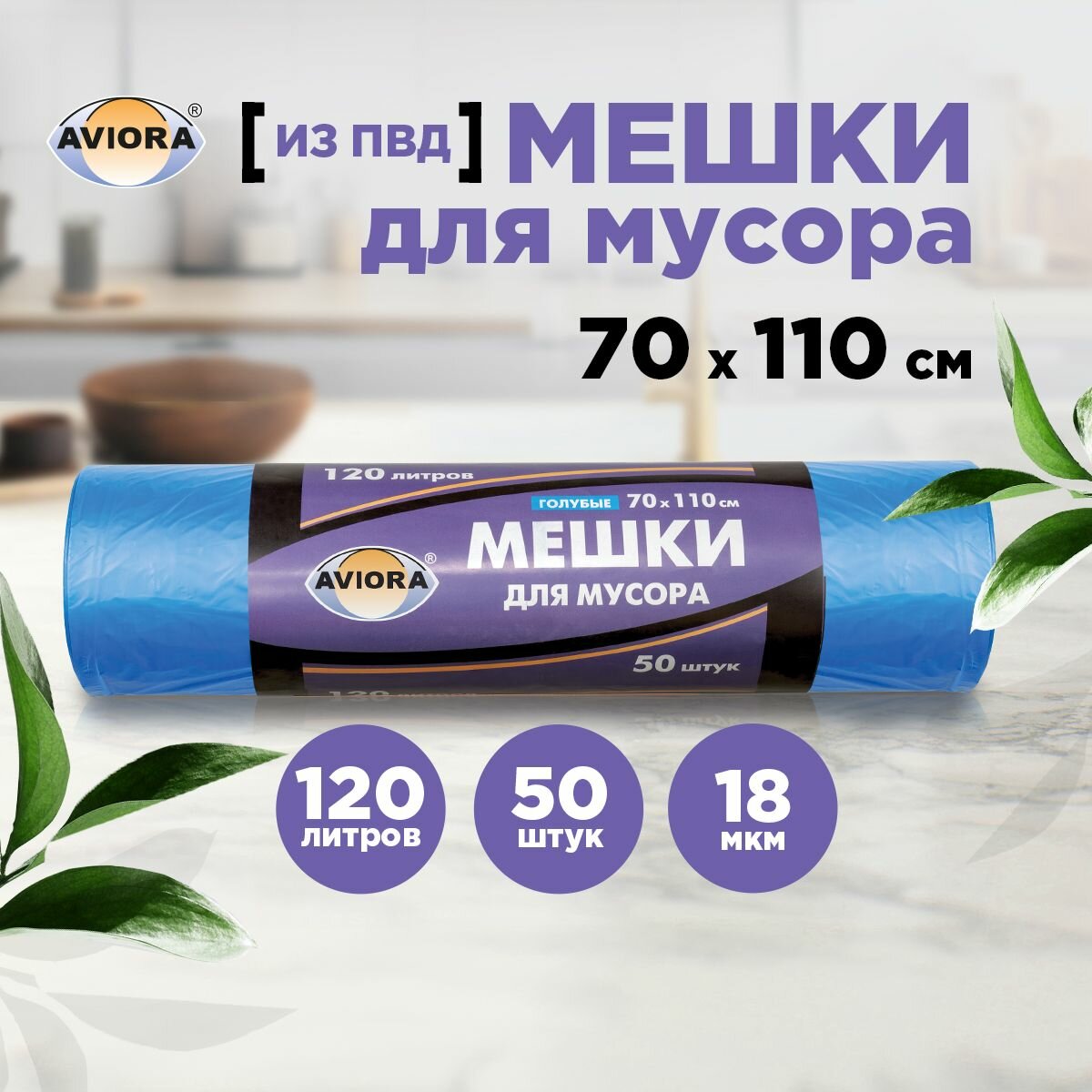 AVIORA Пакет для мусора ПНД синие, 50 шт 106-022 информация:
