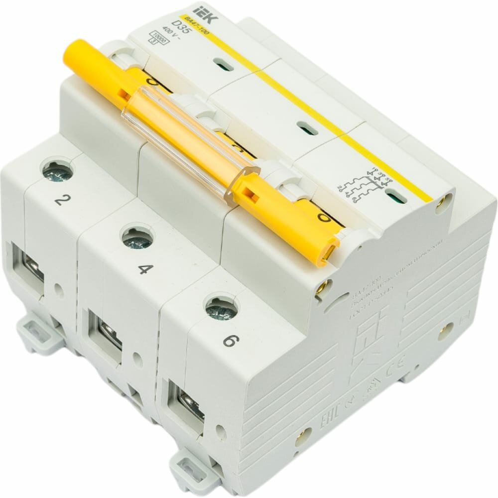 Автоматический выключатель трёхполюсный IEK ВА47-100, 35А, 10кА, характеристика D