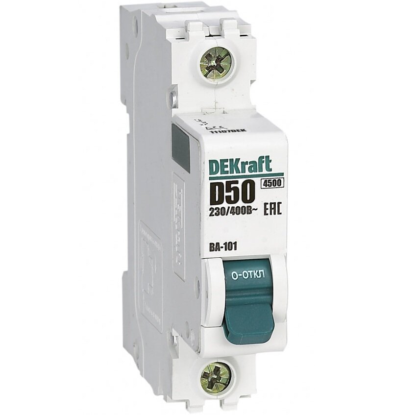 DEKraft Автоматический выключатель 1Р 50А х-ка D ВА-101 4,5кА 11107DEK информация: