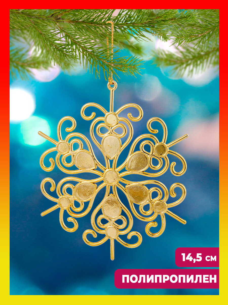 Новогоднее подвесное елочное украшение Снежинка кружевная в золоте из полипропилена / 14,5x14,5x0,3см арт.77947
