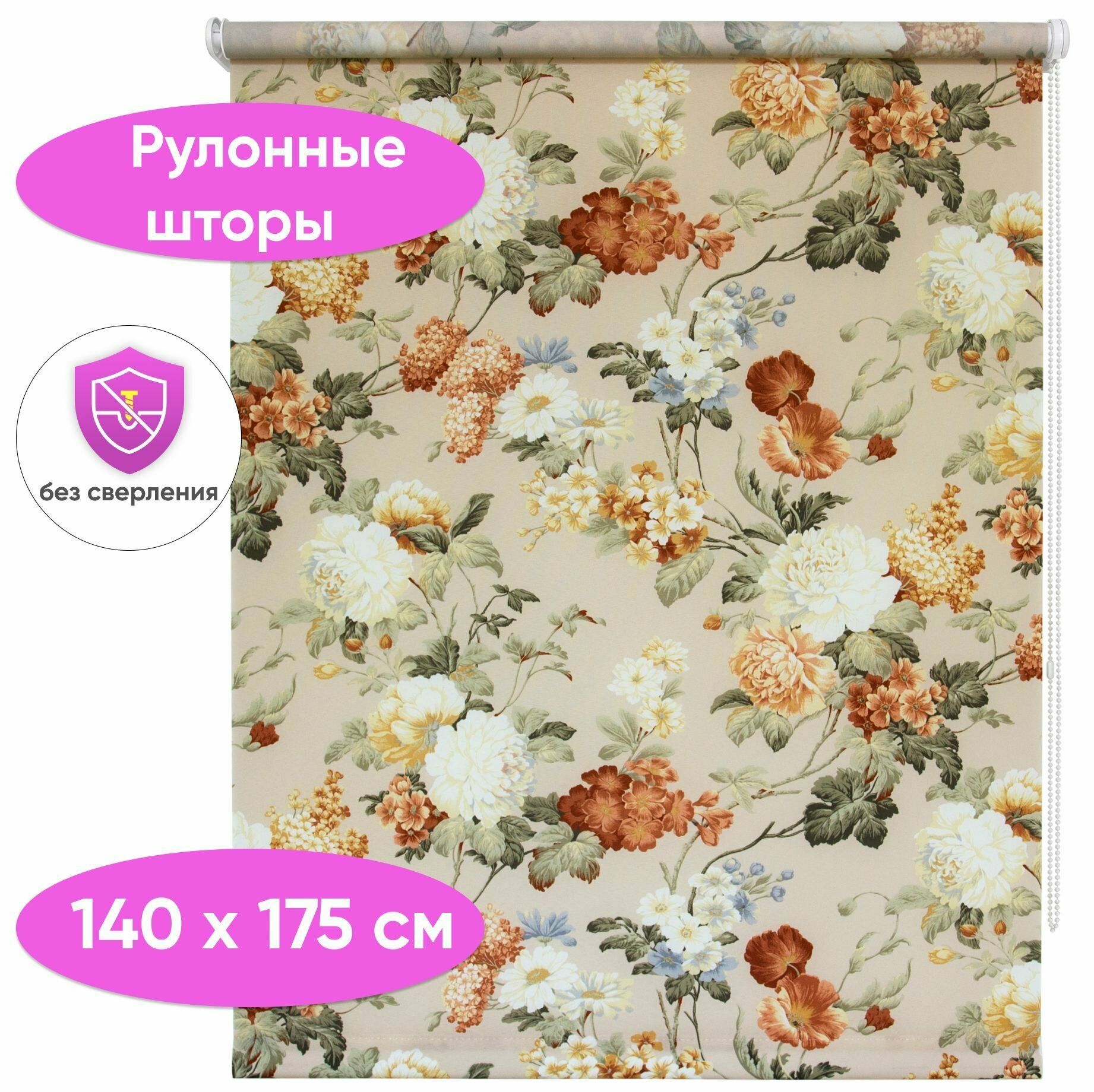 Отзывы на Рулонные шторы с рисунком цветов 140 x 175 см Жалюзи на окна с фотопечатью принта "Букет"