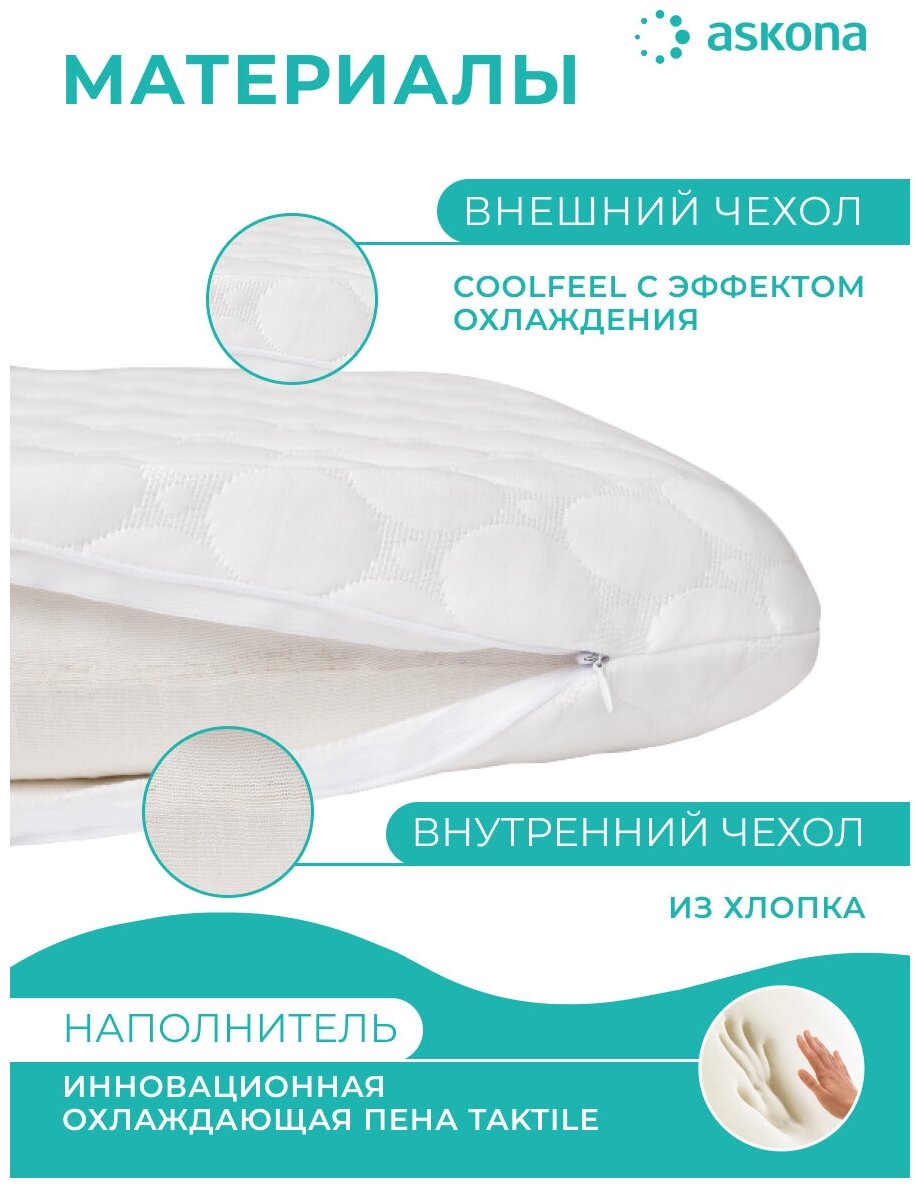 Подушка Аскона Temp Control S Темп Контрол С на кровать для сна с эффектом охлаждения эргономическая Memorix Мемори Фоам Меморикс пена размер 40х60 не 50х70 см 70х70 пуховая антистресс пух перо лебяжий
