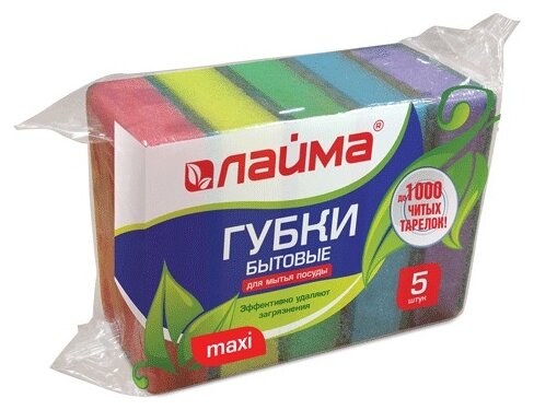 Губка для посуды Лайма Maxi, разноцветный, 5 шт. информация: