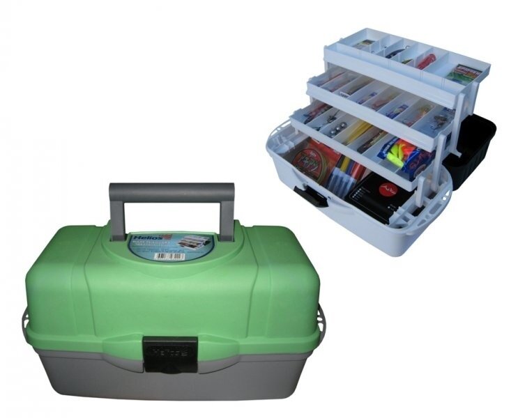 Ящик для рыбалки HELIOS трехполочный зеленый/серый 43 см 22 см