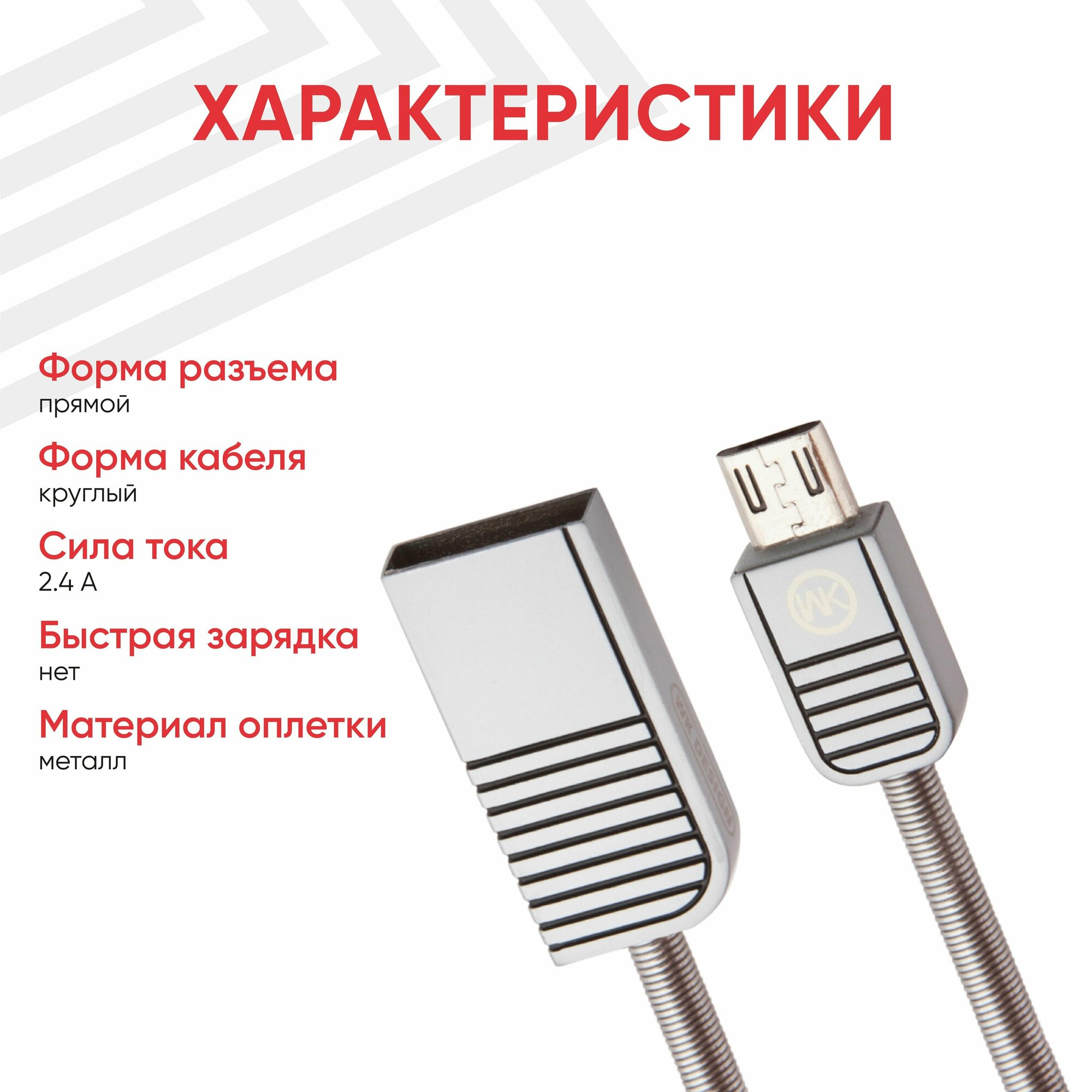 Отзывы на USB кабель WK Lion WDC-026m для зарядки, передачи данных, MicroUSB, 2.4А, 1м, металл, серебряный