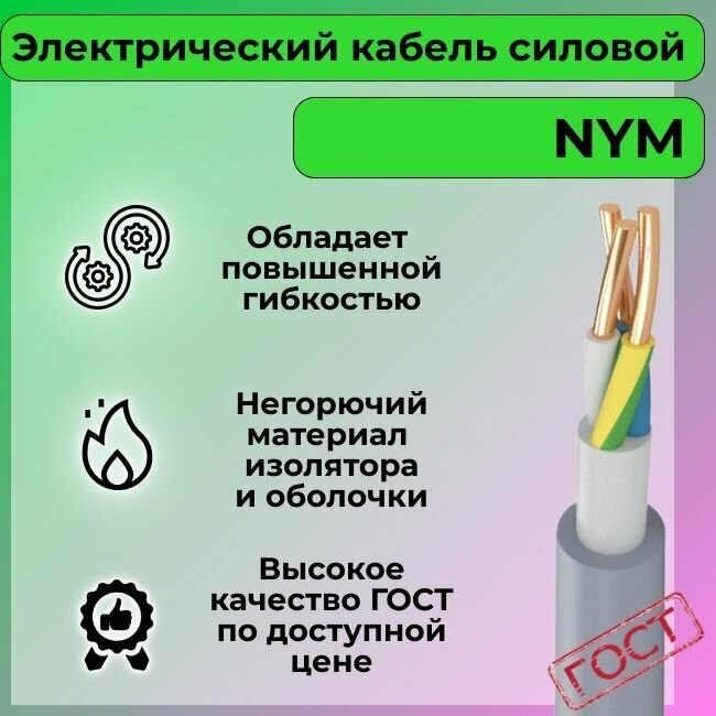 10 цен на Провод электрический/кабель ГОСТ NYM 3х2,5 (N,PE) - 50 м. Конкорд