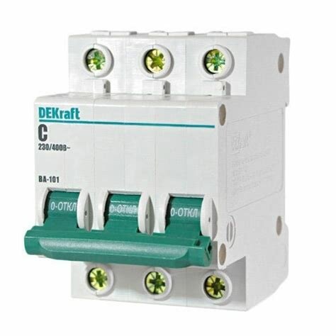 Автоматический выключатель Dekraft ВА-101 (11084DEK) 3P 63А тип C 4,5 кА 400 В на DIN-рейку 900 ₽