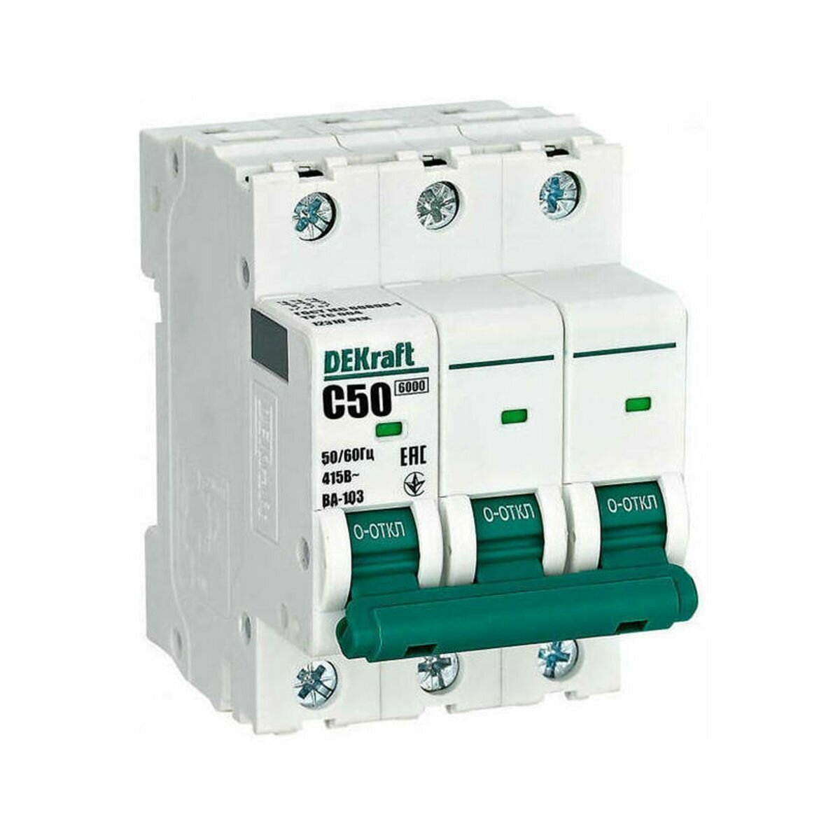 Автоматический выключатель DEKraft ВА-103, 50 ампер, три полюса, характеристика C, 6 кА