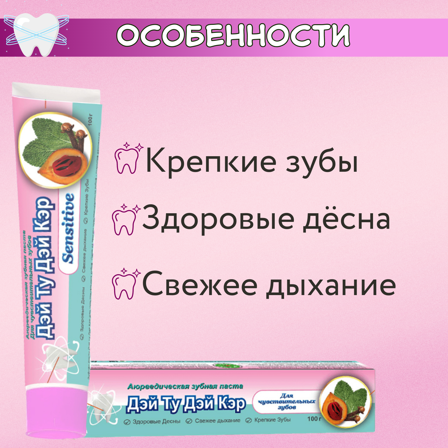 Отзывы на Аюрведическая Зубная паста для чувствительных зубов 5 шт - 100 гр SENSITIVE, Дэй Ту Дэй Кэр