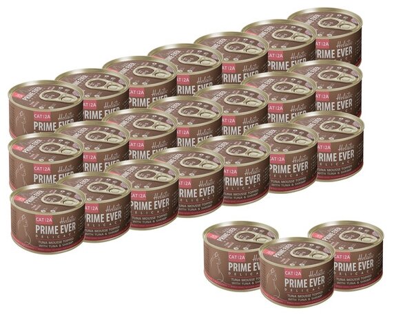 10 цен на Prime Ever Delicacy мусс для взрослых кошек с тунцом и креветками - 80 г х 24 шт