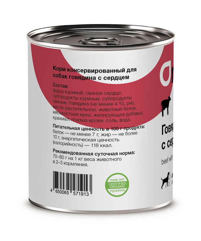 Organix Консервы для собак говядина с сердцем, 850г 0.85 кг информация: