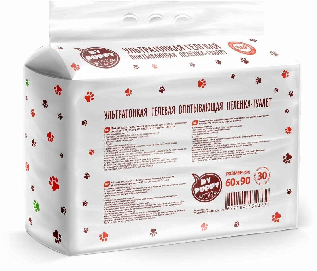 --- Пелёнка впитывающая ультратонкая My puppi WC для животных, гелевая, 60*90 см, 30 шт. информация: