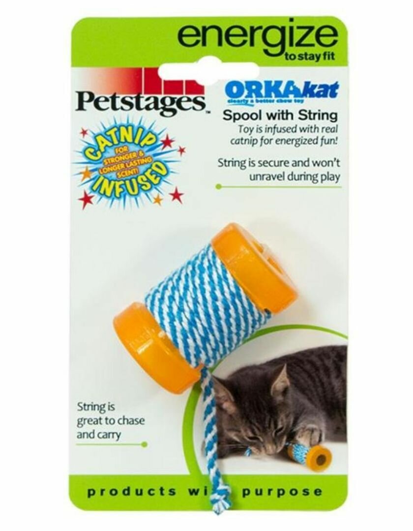 Petstages Игрушка для кошек Energize орка катушка с веревочкой 6 см | Orka Catnip Infused Spool w String 0,04 кг 38924