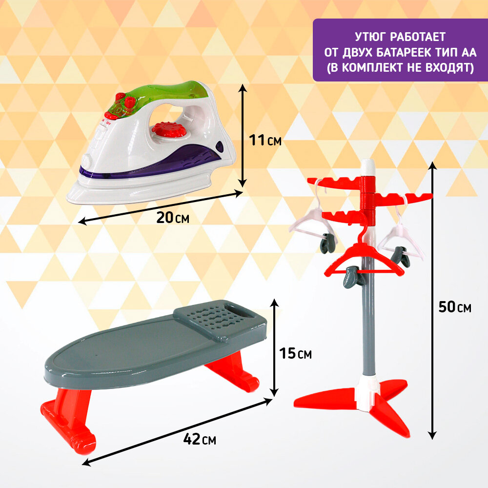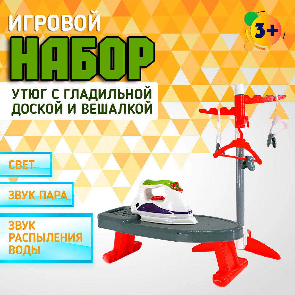 10 цен на Детский игровой набор "Утюг+ гладильная доска + вешалка", в коробке, на батарейках, свет, звук, PLAY SMART 2303 / Игрушки для девочек