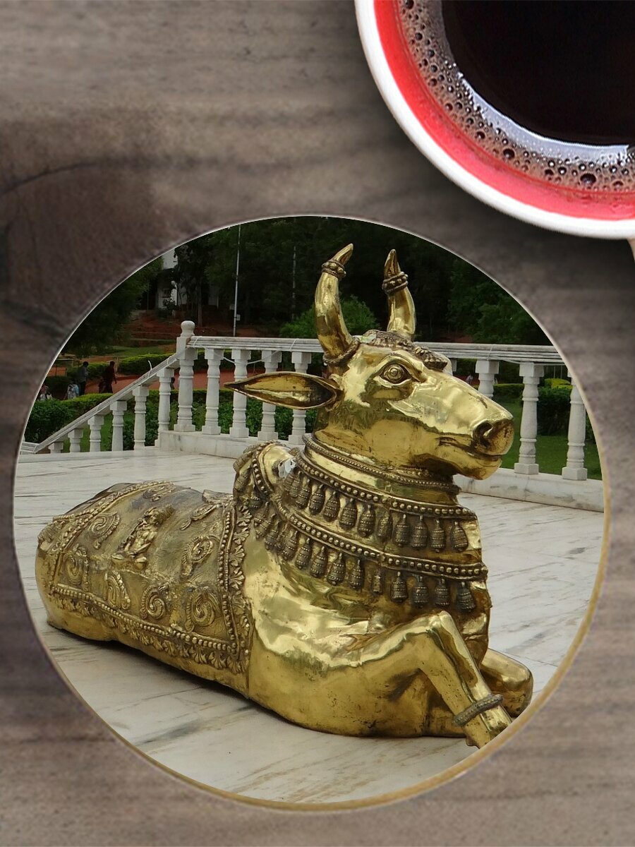 Подставка под горячее "Бык, латунь, нанди" 10 см. из блого мрамора информация: