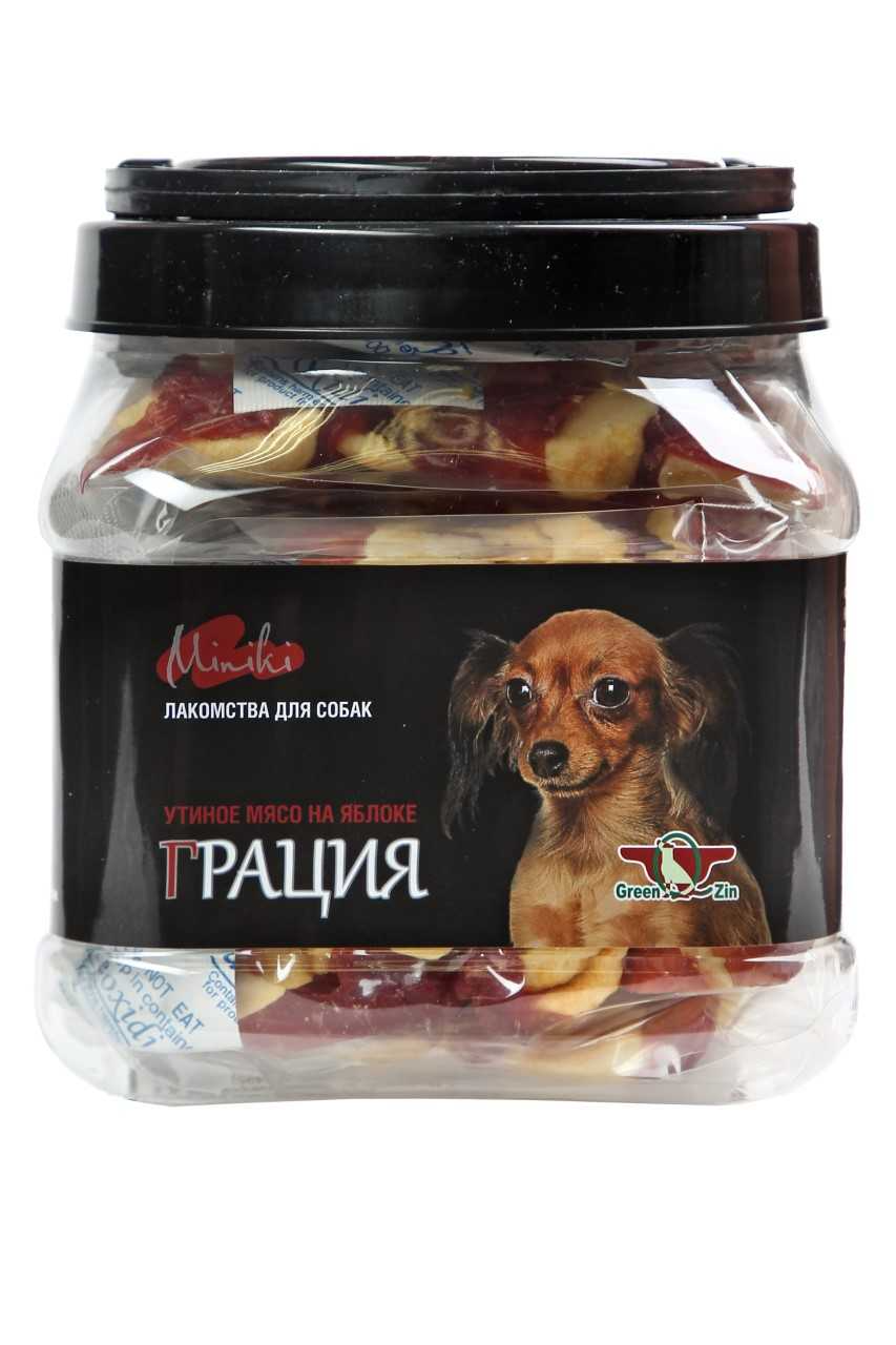 10 цен на Грин Кьюзин Лакомство для собак мини пород миники Грация (сушеное утиное мясо на яблоке) туба 360г