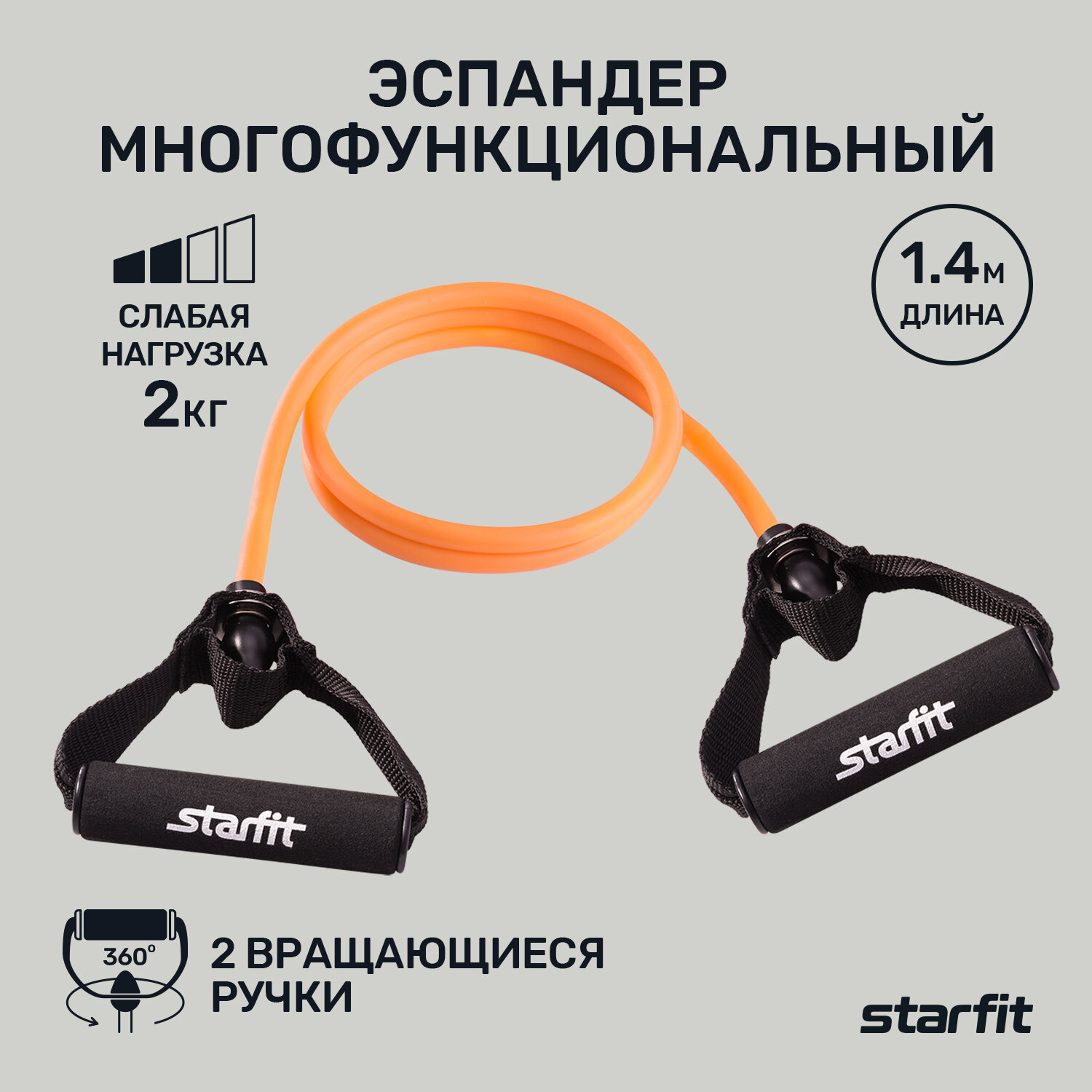 Эспандер многофункциональный Starfit ES-602 нагрузка 3 кг, оранжевый (1,4 метра) 340 ₽