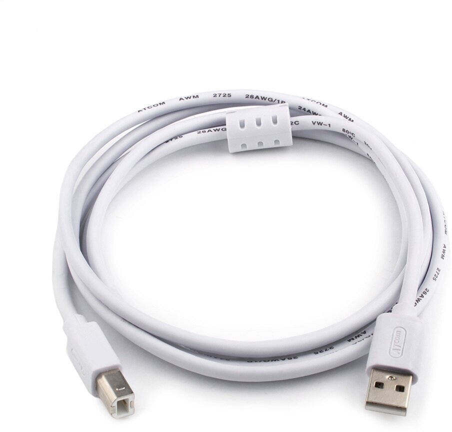 Atcom Кабель USB2.0 соединительный USB A-B Atcom AT8099 (3.0м) белый (oem)