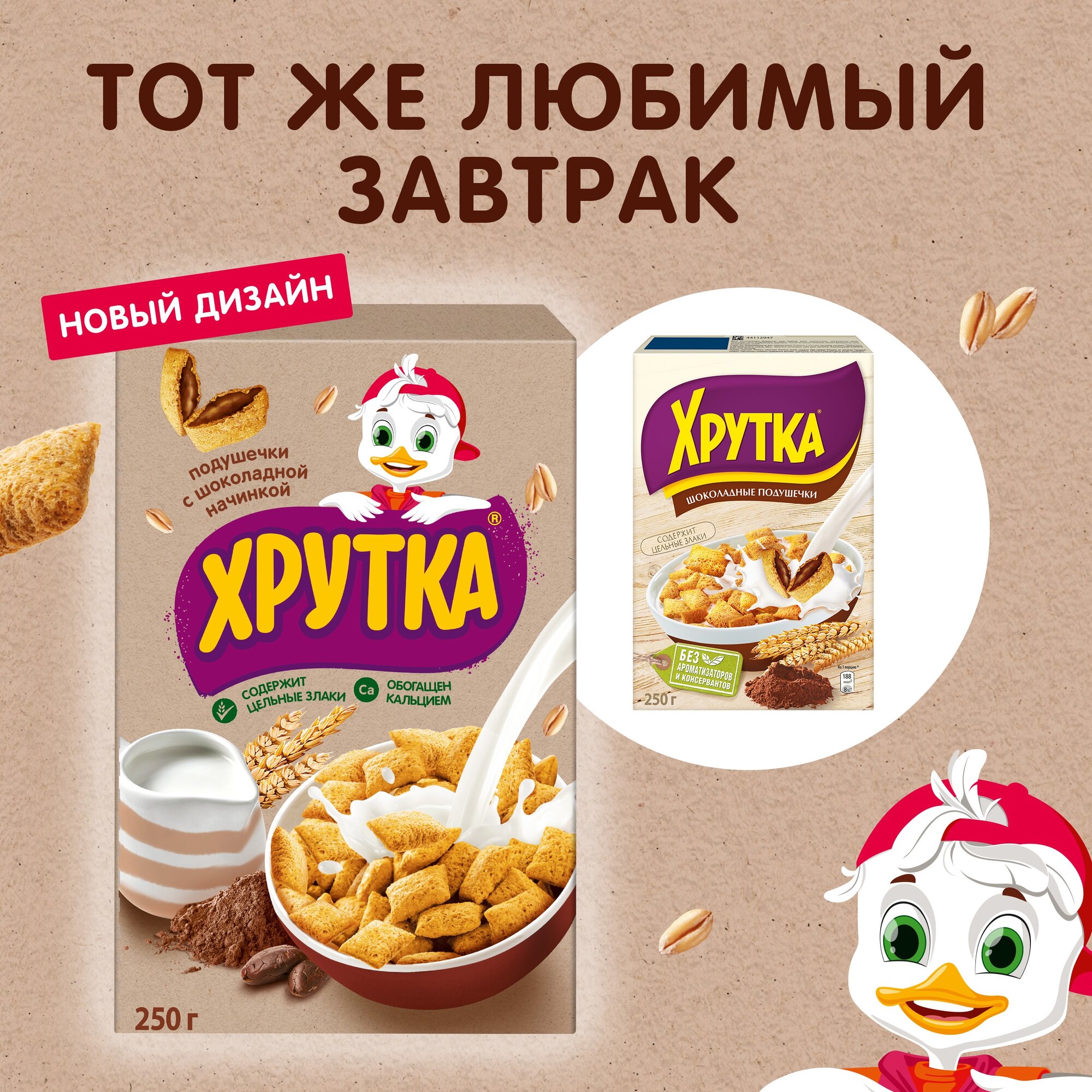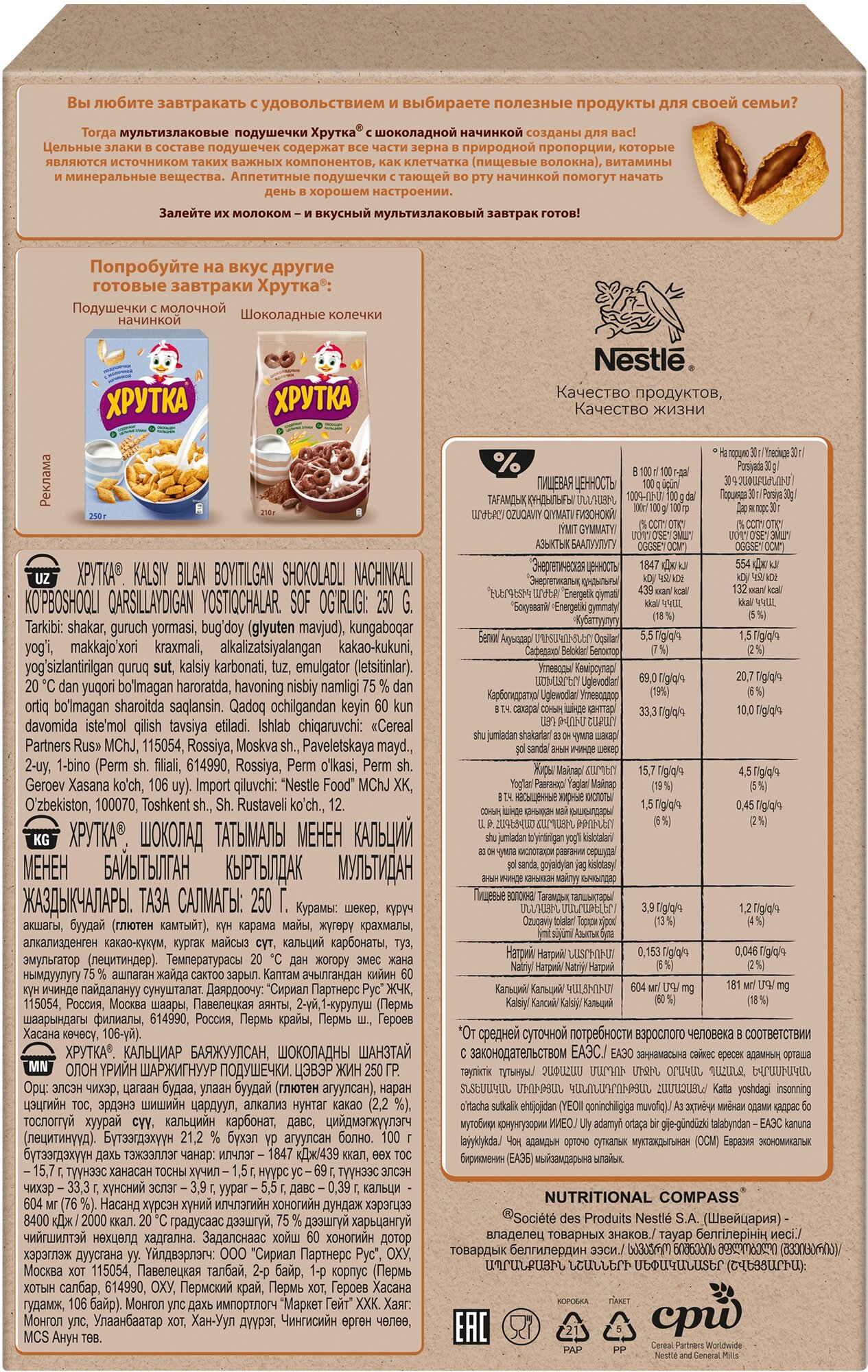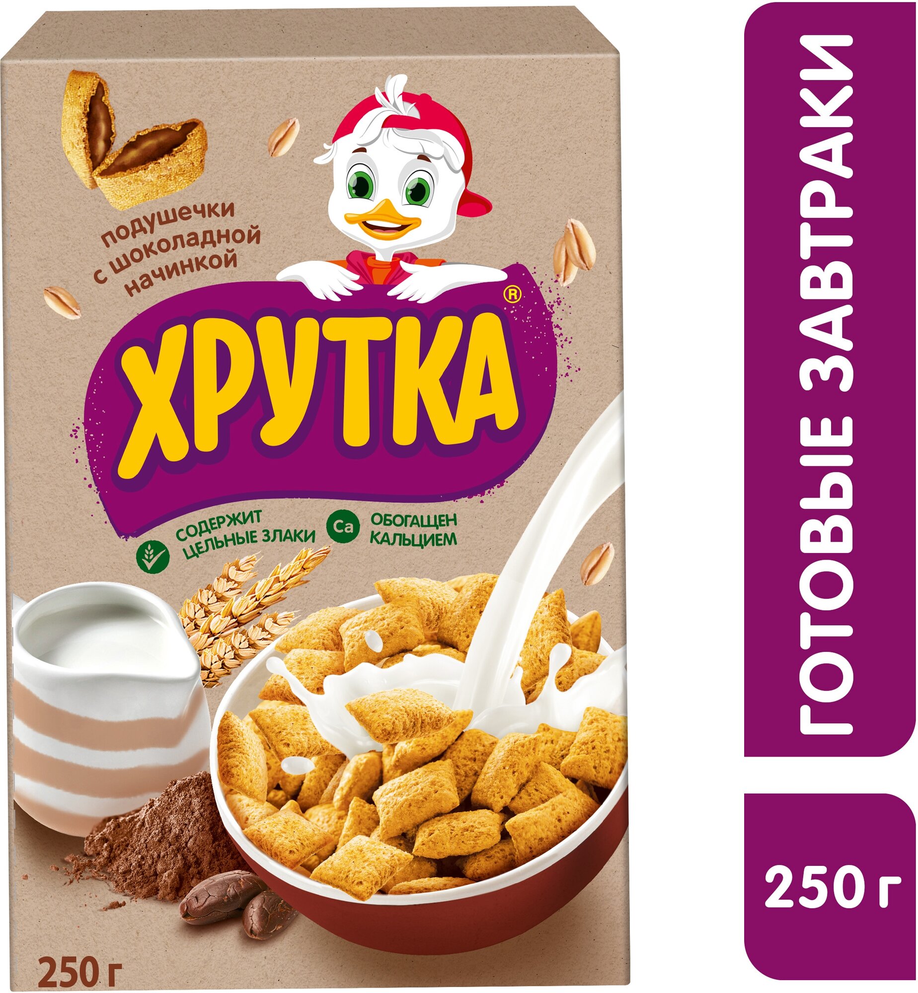 Хрутка Готовый завтрак Хрустящие мультизлаковые подушечки с шоколадной начинкой, обогащённые кальцием, 250 гр информация: