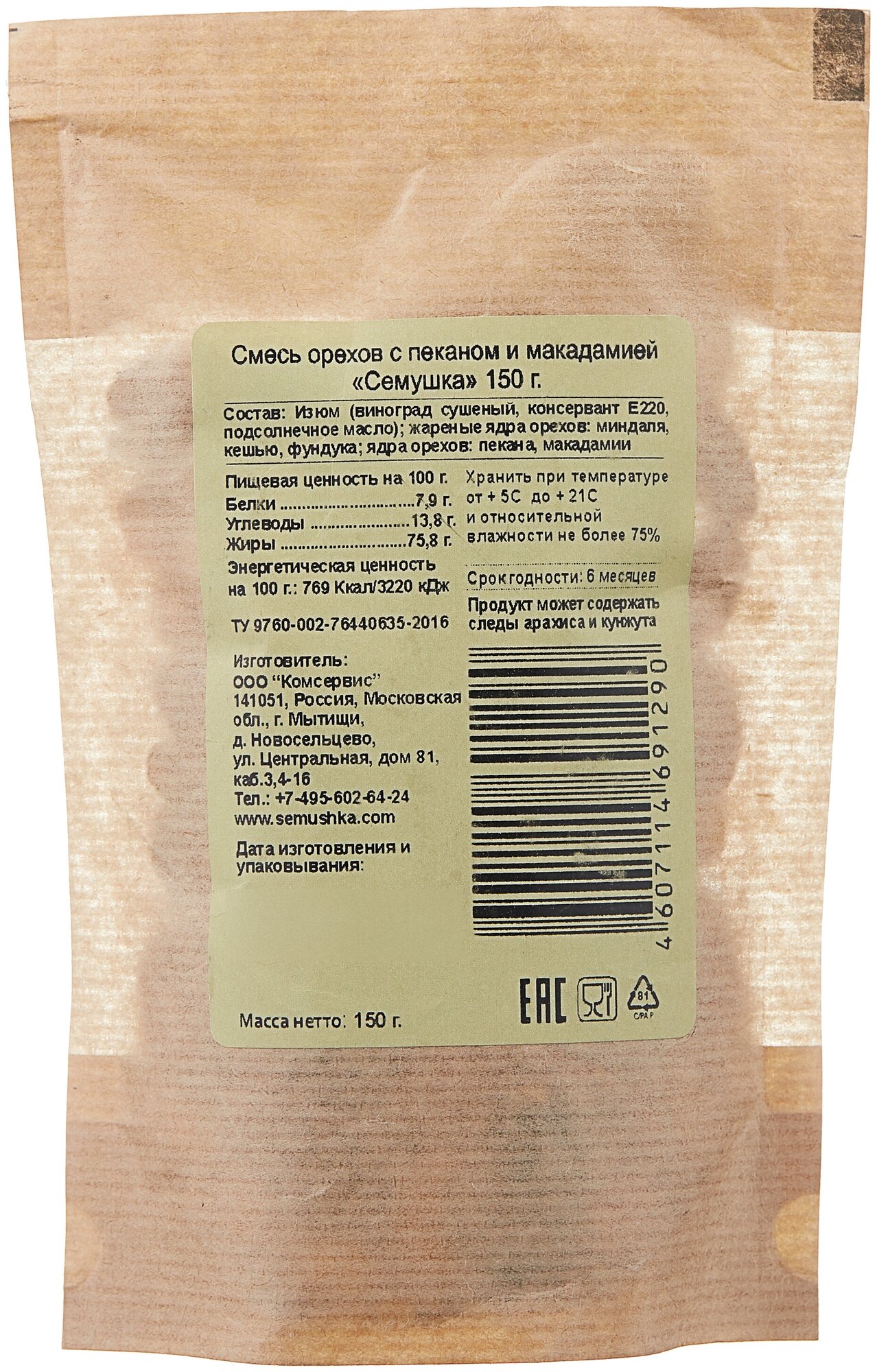 10 цен на Смесь орехов Семушка с пеканом и макадамией, 150г