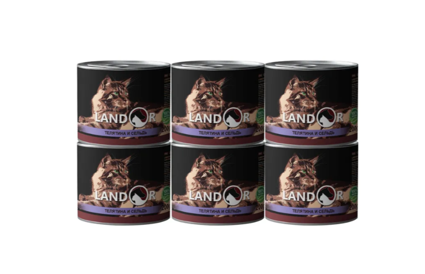 Корм влажный для пожилых кошек Landor телятина с сельдью, 200 гр. х 6шт. информация: