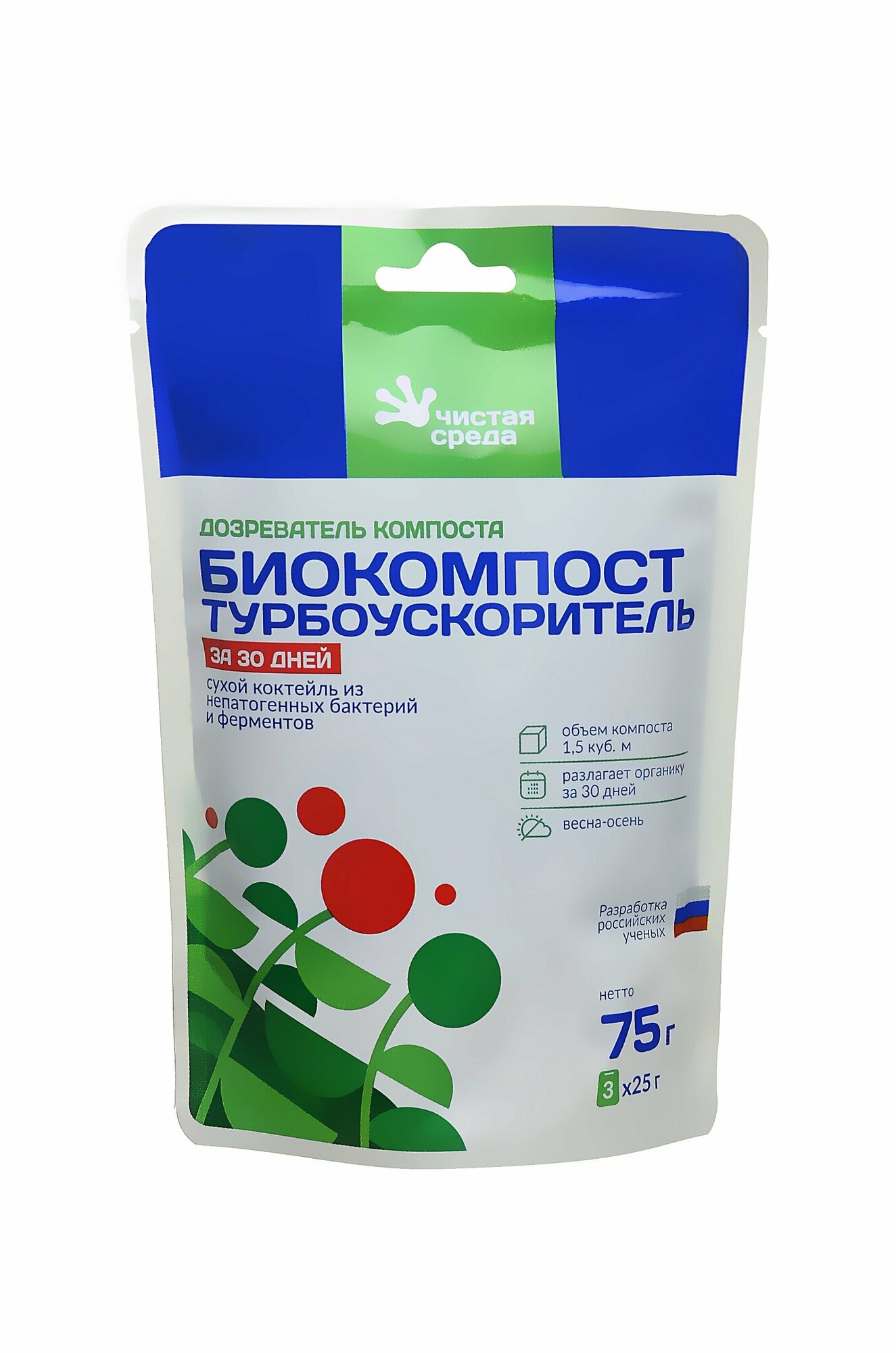 Биоактиватор для ускорения компостирования "Биокомпост турбоускоритель"за 30дн,дой-пак75 гр../В упаковке шт: 3 информация: