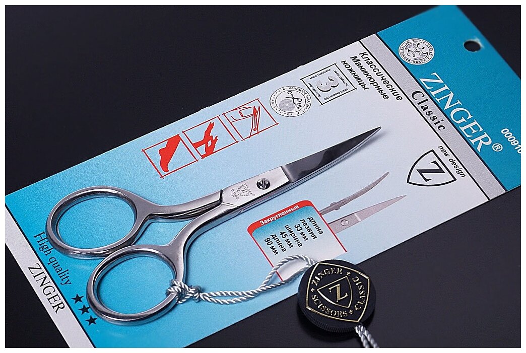 Ножницы маникюрные, закругленные, с ручной заточкой Zinger