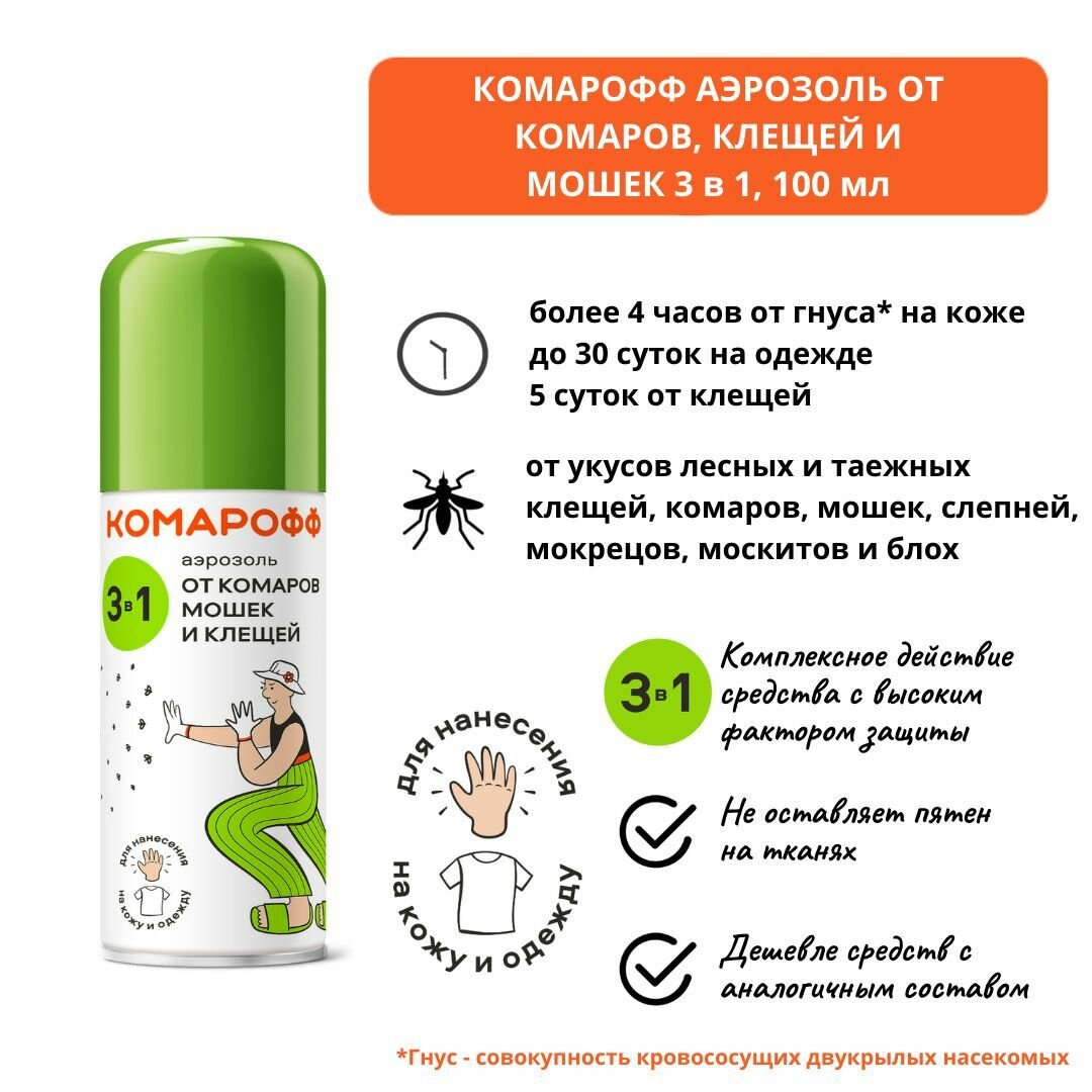 10 цен на Аэрозоль "Комарофф" от комаров, клещей и мошек 3 в 1, 100 мл