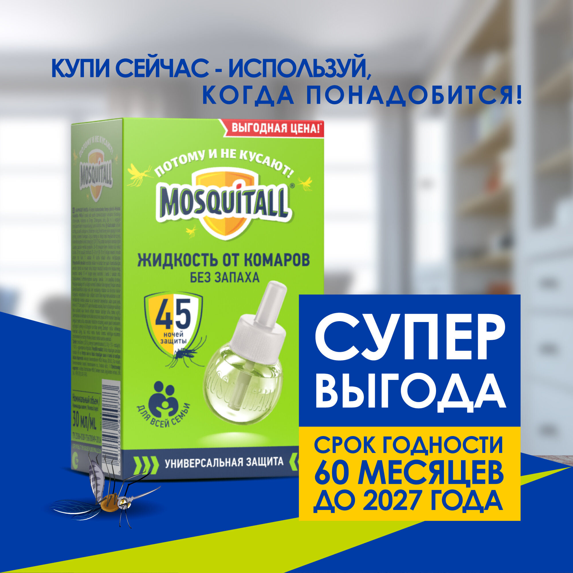 MOSQUITALL - Жидкость 45 ночей "Универсальная защита" от комаров, 30 мл