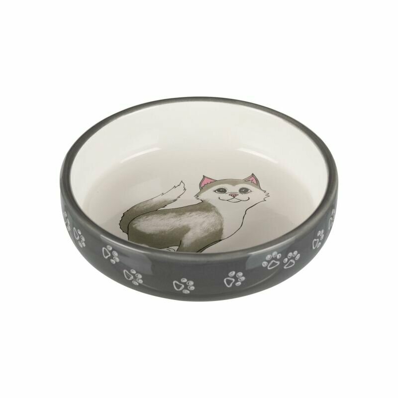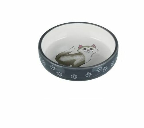 Миска керамическая с рисунком Кот, 0.25 л/ф 13 см, серый, Trixie (миска для животных, 24652)
