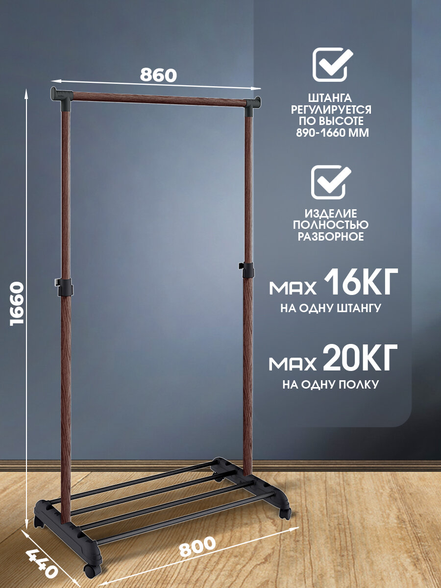 Стойка для одежды 4345 Sheffilton Red&Black черный, темный орех 1 940 ₽