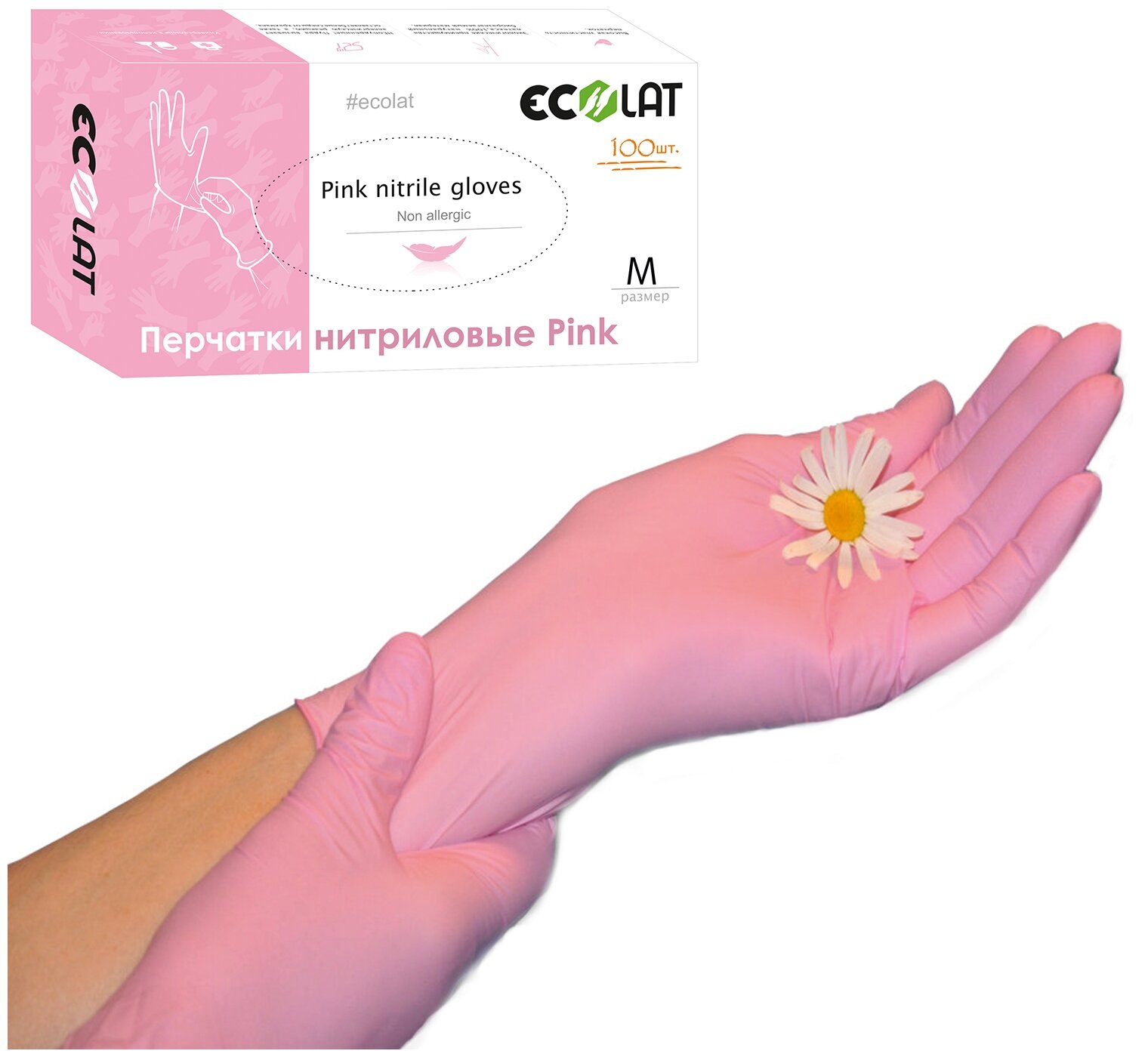 10 цен на EcoLat Перчатки нитриловые Pink 100 шт./уп. размер M, 3435/M