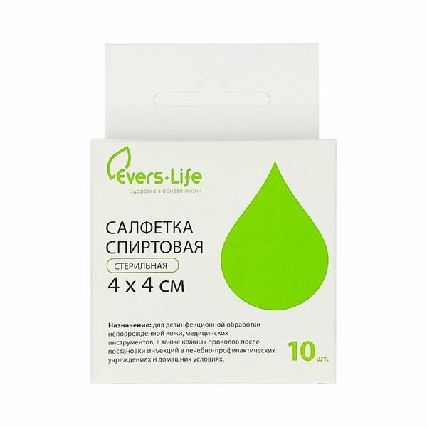 10 цен на Салфетка спиртовая стерильная ЭверсЛайф Evers Life 4см х 4см 10шт