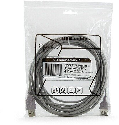 Gembird кабели CC-USB2-AMAF-15 USB 2.0 кабель удлинительный 4.5м AM AF , пакет