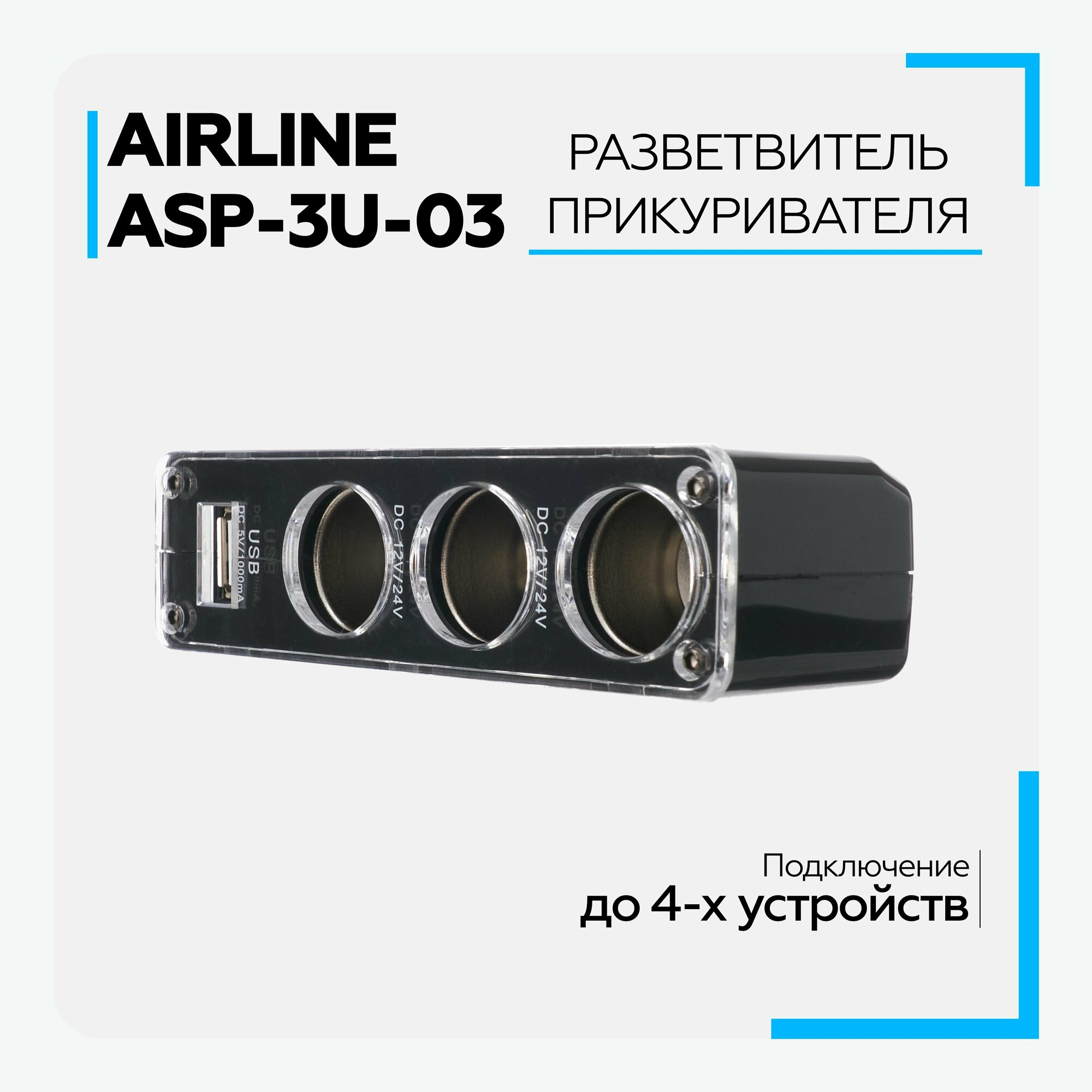 AIRLINE ASP-3U-07 Прикуриватель-разветвитель на 3 гнезда + USB (черный)