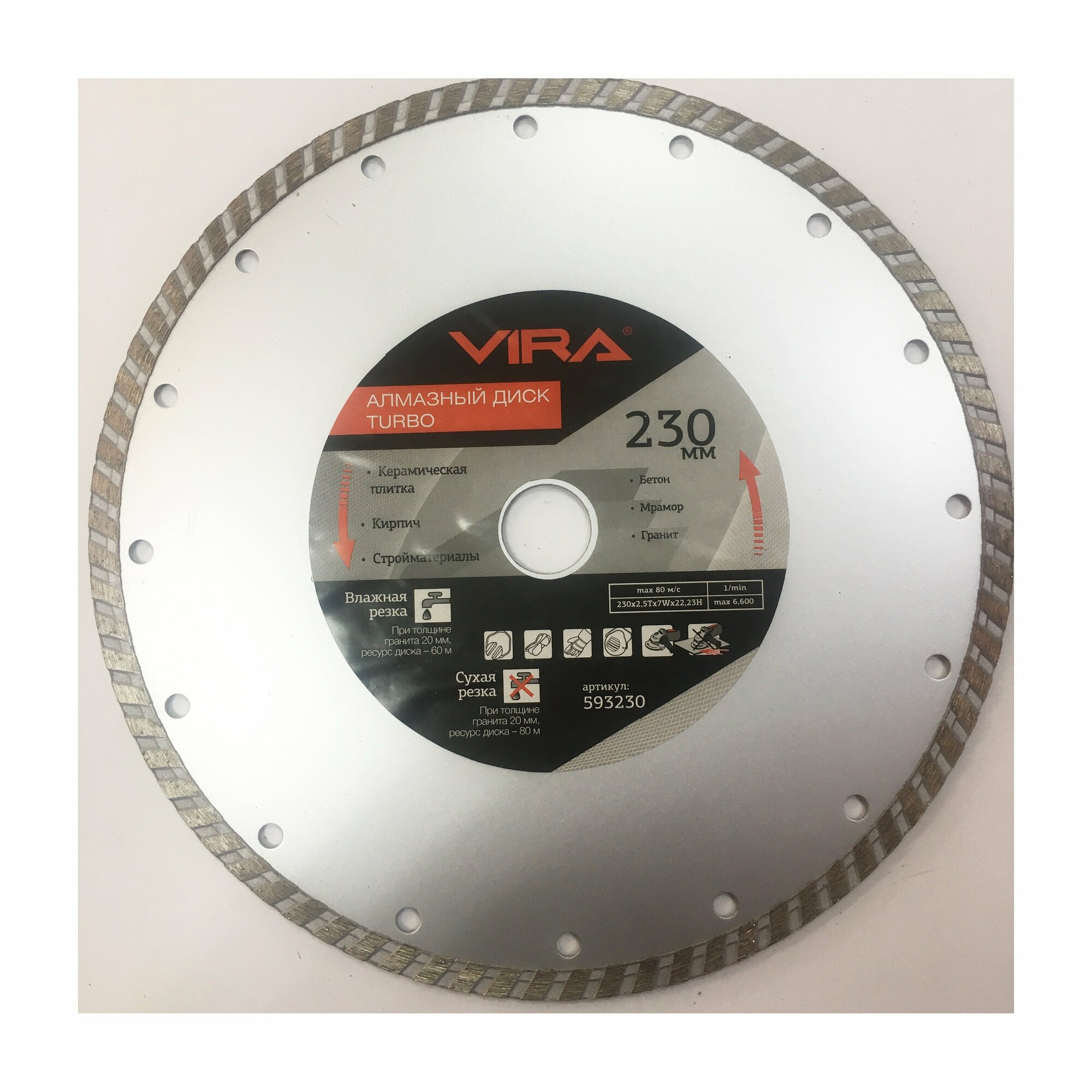 Диск алмазный 230 х 22.23 турбо VIRA информация: