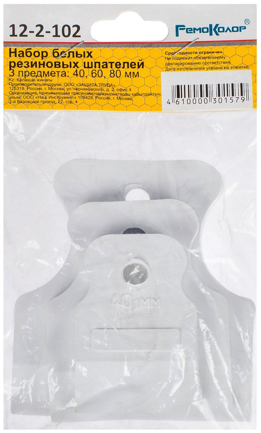 Набор Ремоколор белых, резиновых шпателей, 3 предмета: 40, 60, 80 мм /уп,/ 12-2-102 информация: