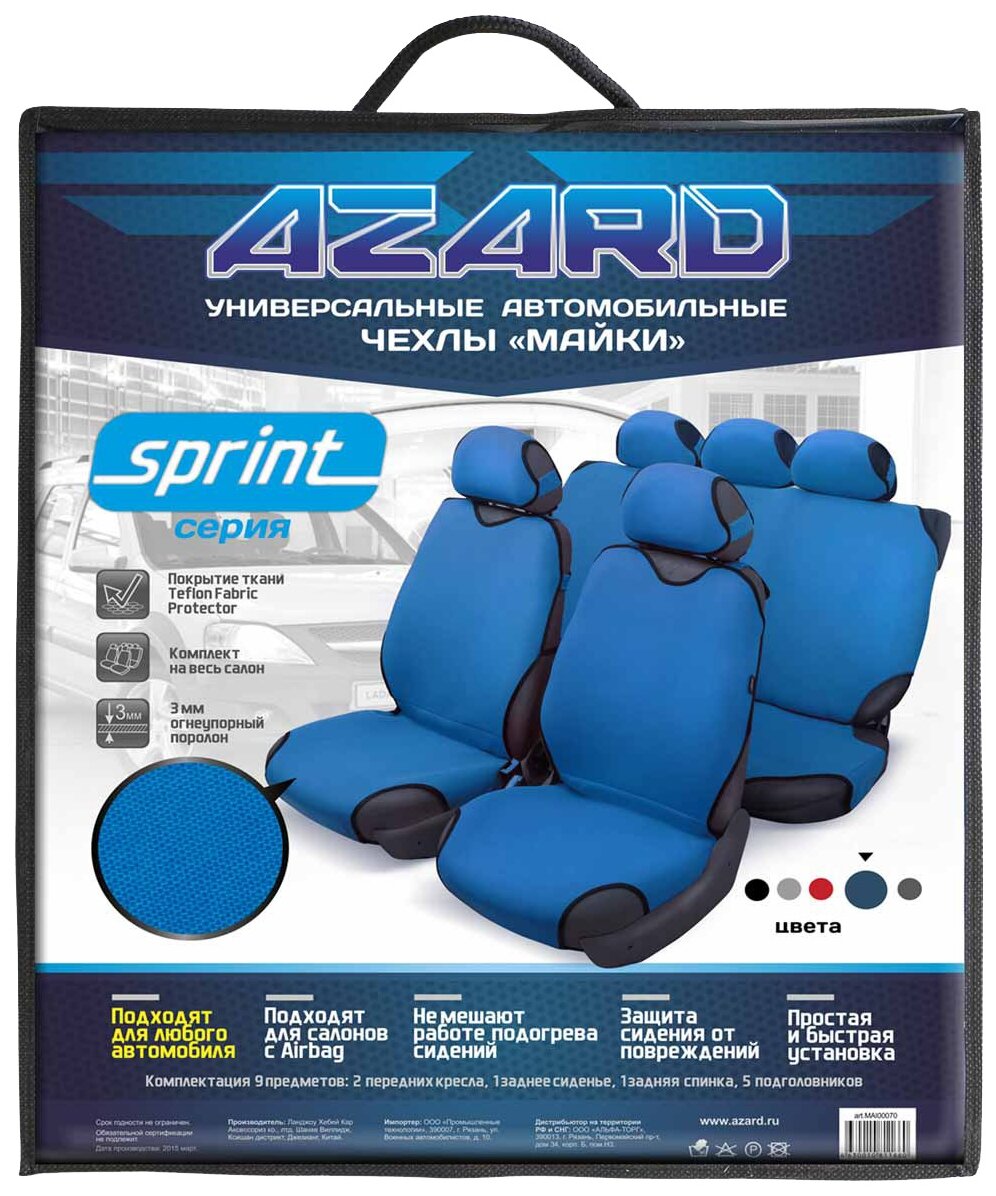 Чехлы-майка на сиденья SPRINT /синий/ полный AZARD MAI00070