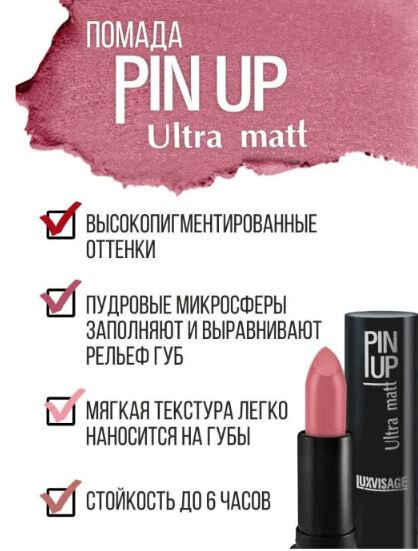Отзывы на LUXVISAGE Стойкая ультраматовая помада PIN UP ultra matt тон 514 NATALIE