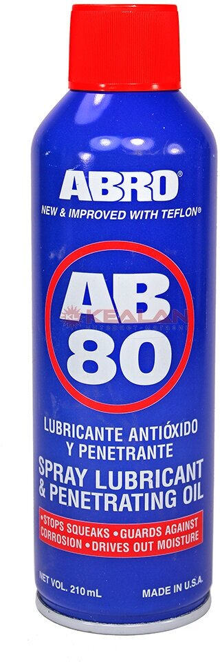 Смазка проникающая (жидкий ключ) ABRO AB80 Spray Lubricant & Penetrating Oil, многоцелевая, с тефлоном, аэрозоль 400мл, арт. AB-80-10-R 519 ₽