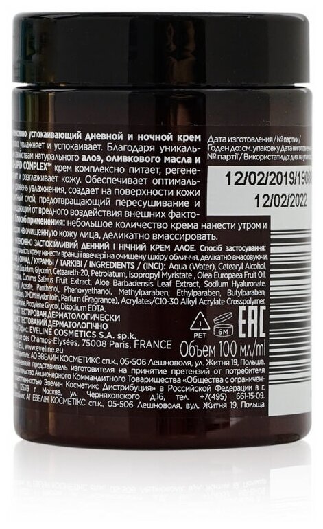 Успокаивающий дневной и ночной крем Eveline алоэ, оливковое масло 100 мл информация: