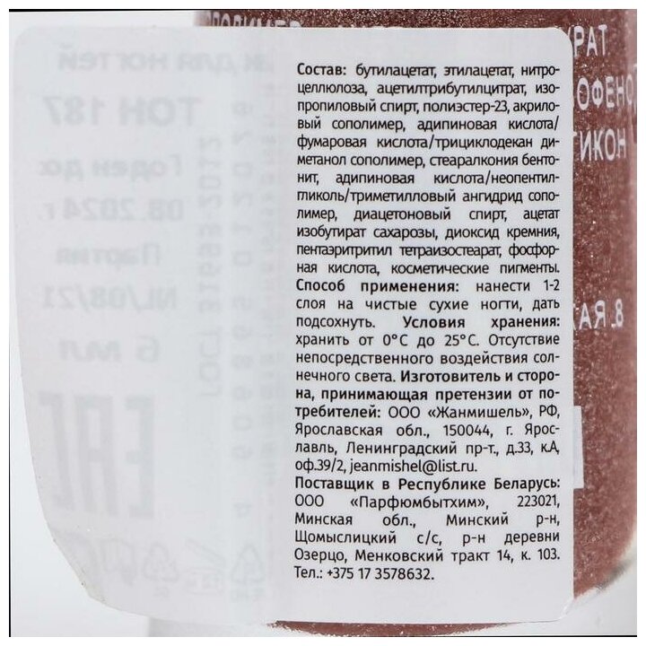 JEANMISHEL Mini Лак для ногтей №187 Темный беж с золотым песком с блестками 6 мл информация: